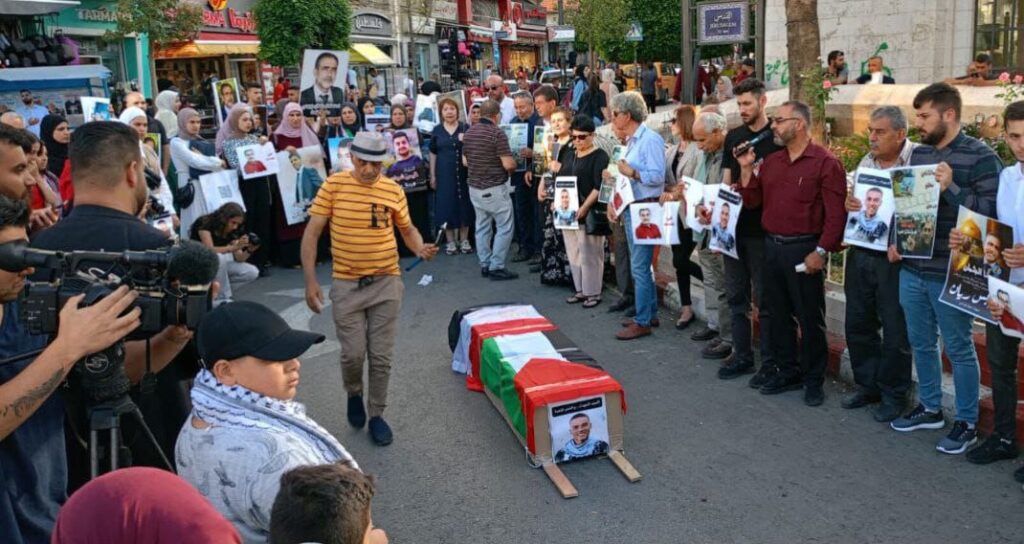 نظمت عائلات الشهداء المحتجزة جثامينهم لدى سلطات الاحتلال، مساء اليوم السبت، وقفة وسط مدينة رام الله، للمطالبة باسترداد جثامين أبنائهم، كما طالبوا بالإفراج الفوري عن الأسير المريض وليد دقة.