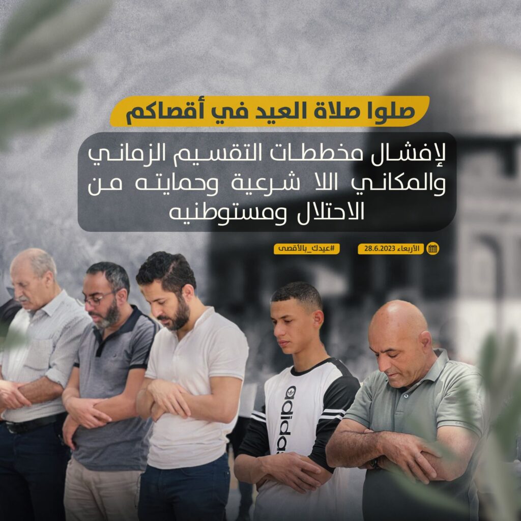 وفي السياق، دعت حراكاتٌ مقدسية لإحياء فجر عرفة غدًا الثلاثاء في المسجد الأقصى المبارك، وسط تصاعدٍ في هجمة الاحتلال التهويدية واعتداءات مستوطنيه واقتحاماتهم.