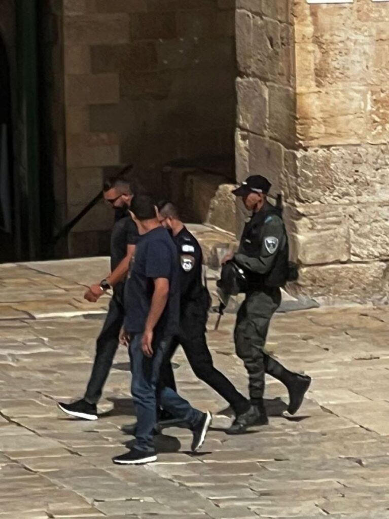 وأفادت مصادر مقدسية باعتقال قوات الاحتلال حارسي الأقصى عرفات نجيب ومحمد الصالحي، وموظف لجنة الإعمار حسام سدر أثناء تأديتهم عملهم في المسجد المبارك.