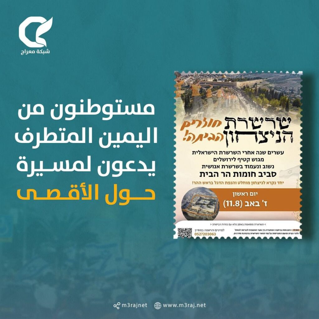 كما دعت “جماعات الهيكل المزعوم” أنصارها للمشاركة في أكبر اقتحام للمسجد الأقصى المبارك إحياء للذكرى المزعومة يوم الثلاثاء المقبل.