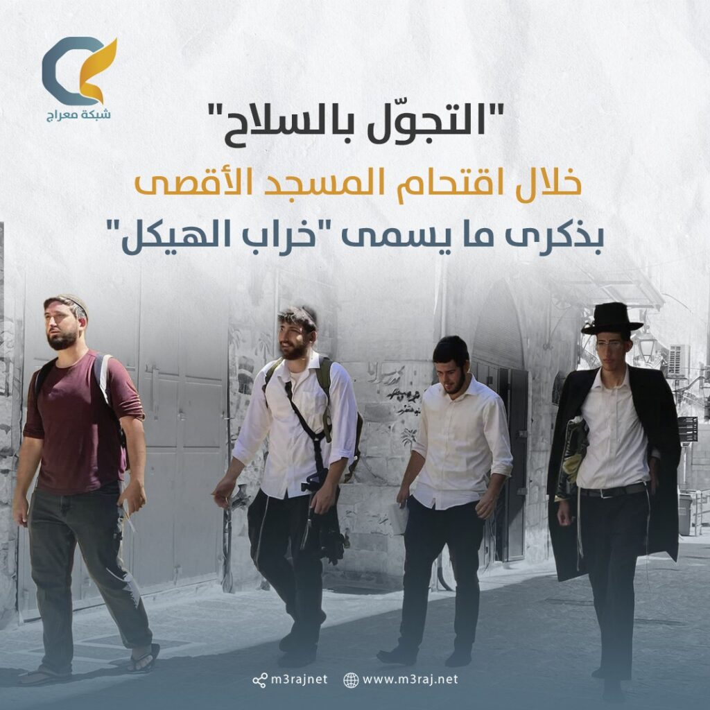 تجوّل قطعان المستوطنين بالسلاح خلال اقتحامهم المسجد الأقصى المبارك اليوم الثلاثاء، في ذكرى ما يسمى “خراب الهيكل” المزعوم، وسط حماية مشددة من شرطة الاحتلال “الإسرائيلي”.