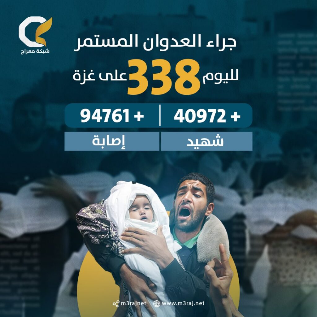 ويواصل الاحتلال “الإسرائيلي” حرب الإبادة الجماعية في قطاع غزة لليوم الـ 337 على التوالي.