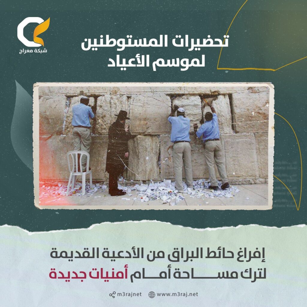 أعلنت مؤسسة “تراث الحائط الغربي”، التي تشرف على إدارة حائط البراق غربي المسجد الأقصى، عن بدء حملة لتنظيف وإزالة الأدعية الورقية التي وضعها المستوطنون في الحائط المحتل خلال الأشهر الستة الماضية.