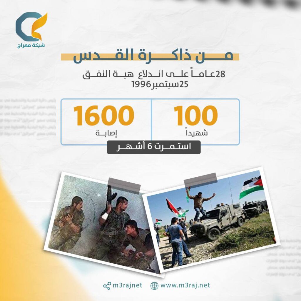 في يوم 25 سبتمبر 1996، اندلعت “هبة النفق” بالقدس المحتلة، رفضاً على افتتاح الاحتلال ما يُعرف بالنفق الغربي، وتهويد المسجد الأقصى المبارك.