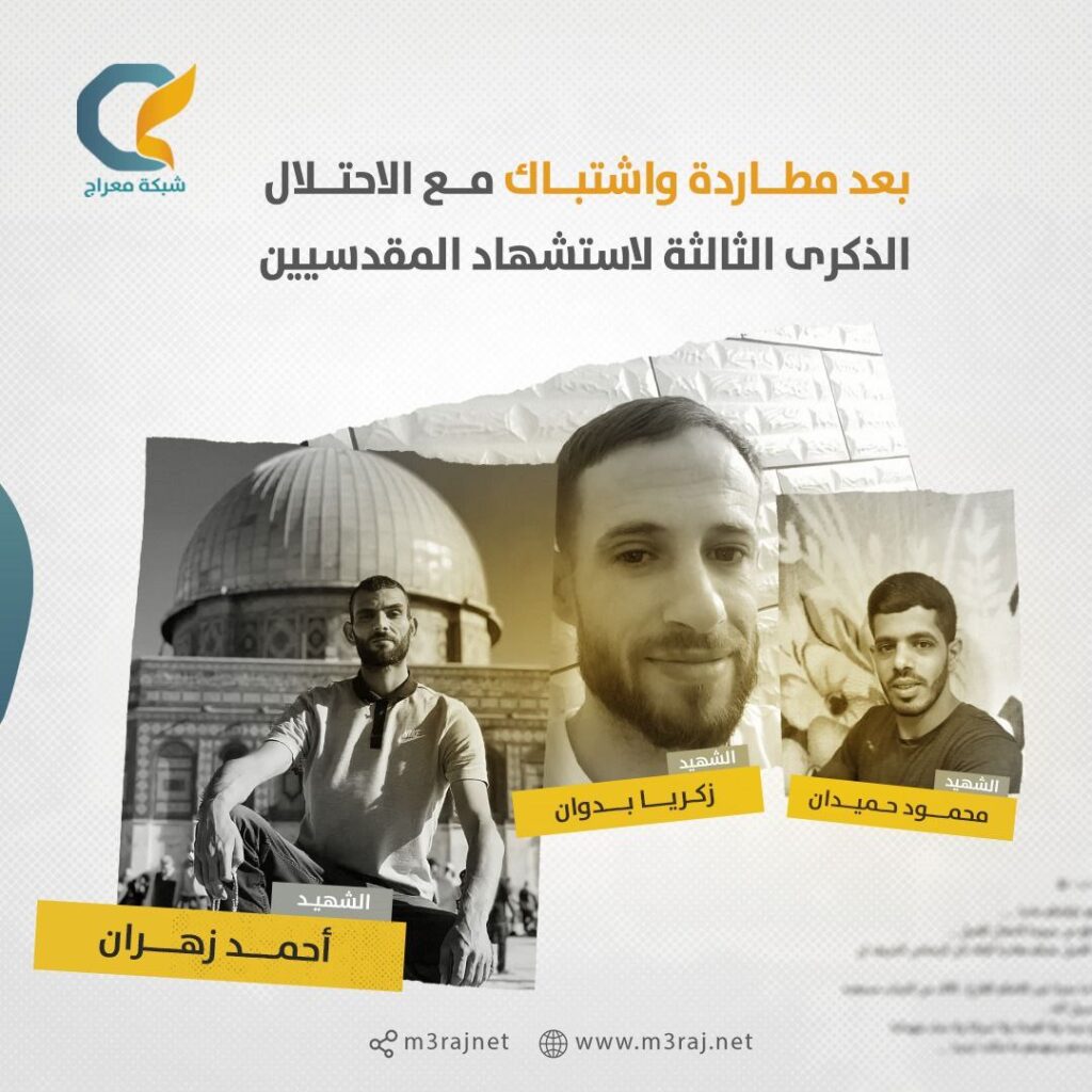 يصادف اليوم الخميس، الذكرى الثالثة لاستشهاد ثلاثة شبان مقدسيين وهم أحمد زهران، وزكريا إبراهيم بدوان، ومحمود مصطفى حميدان.