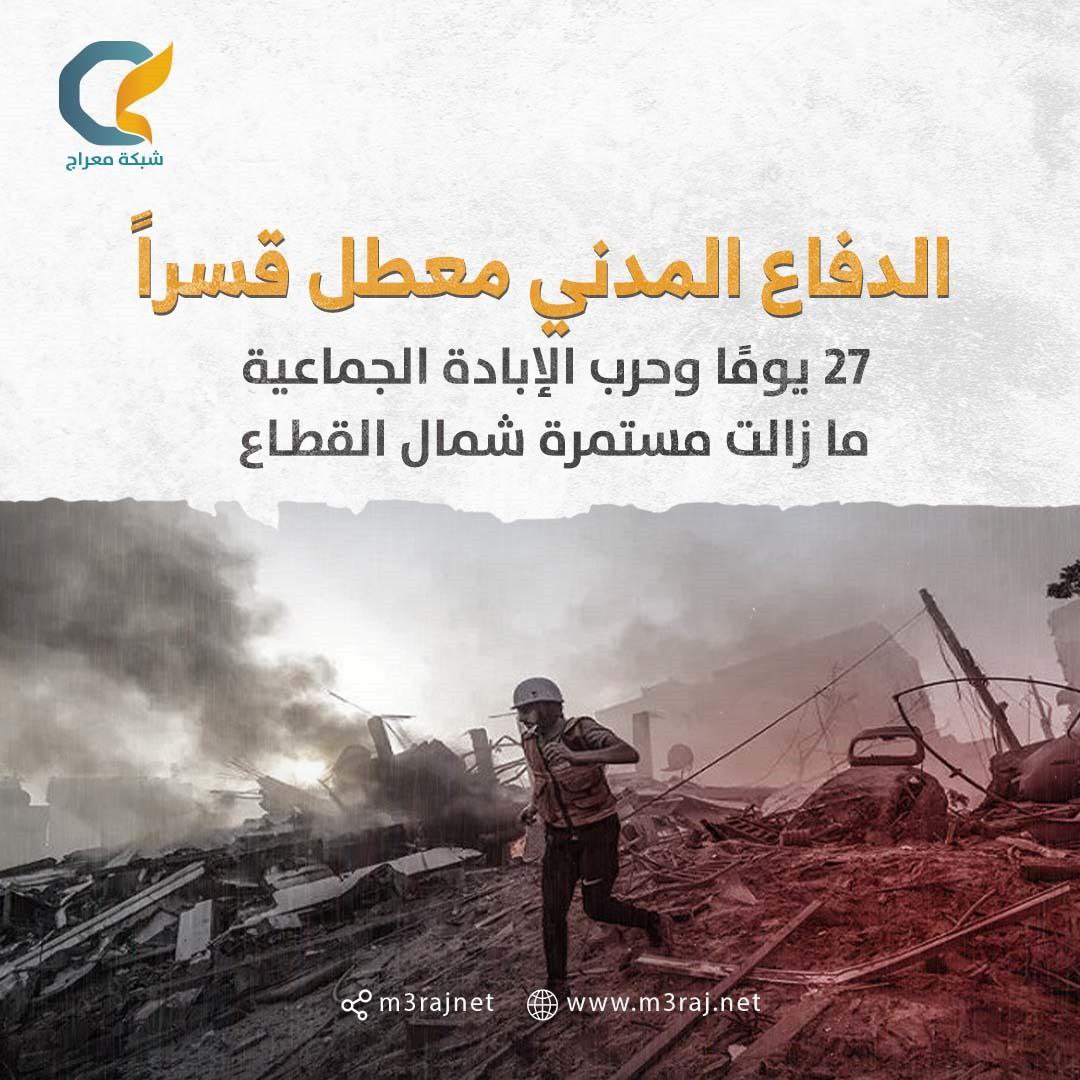 تواصل قوات الاحتلال “الإسرائيلي” شن حرب إبادة الجماعية وفرض حصار خانق في المناطق الشمالية من قطاع غزة، منذ 27 يومًا، كما وتمنع إدخال الغذاء والدواء.