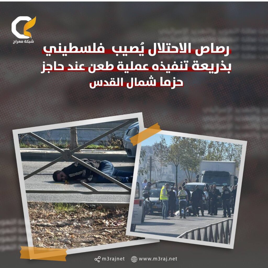 أطلقت قوات الاحتلال “الإسرائيلي” الرصاص الحي على شاب فلسطيني اليوم الإثنين، بزعم تنفيذه عملية طعن بالقرب من مستوطنة “بسجات زئيف” المقامة على أراضي بيت حنينا، قرب حاجز حزما شمال شرقي القدس المحتلة، مما أسفر عن إصابته.