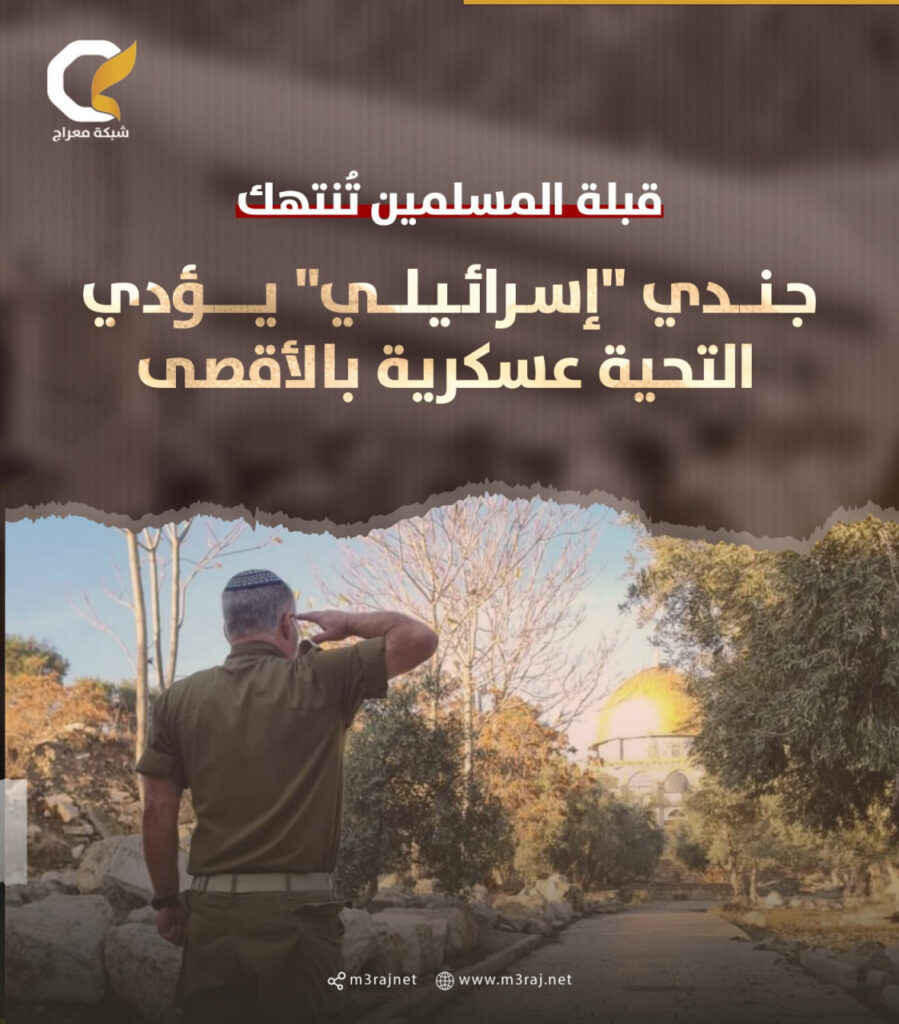 أدى جندي في جيش الاحتلال “الإسرائيلي” التحية العسكرية داخل باحات المسجد الأقصى المبارك، ملتفتًا صوب صحن قبة الصخرة المشرفة، وذلك خلال اقتحامات اليوم في خطوة استفزازية.