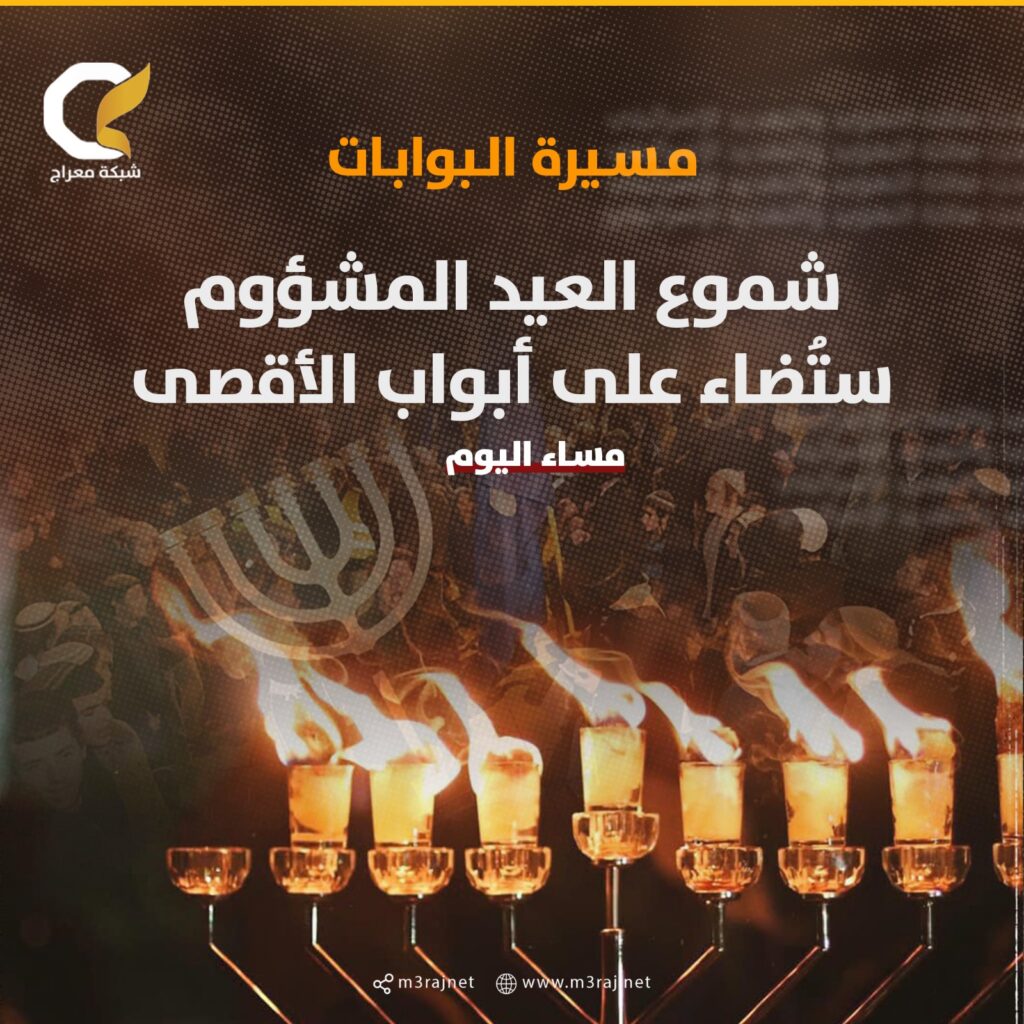 دعت جماعات “الهيكل” المزعوم أنصارها للمشاركة في “مسيرة البوابات” مساء اليوم عند أبواب المسجد الأقصى المبارك، لإحياء ما يسمى بعيد الأنوار “الحانوكاة”.