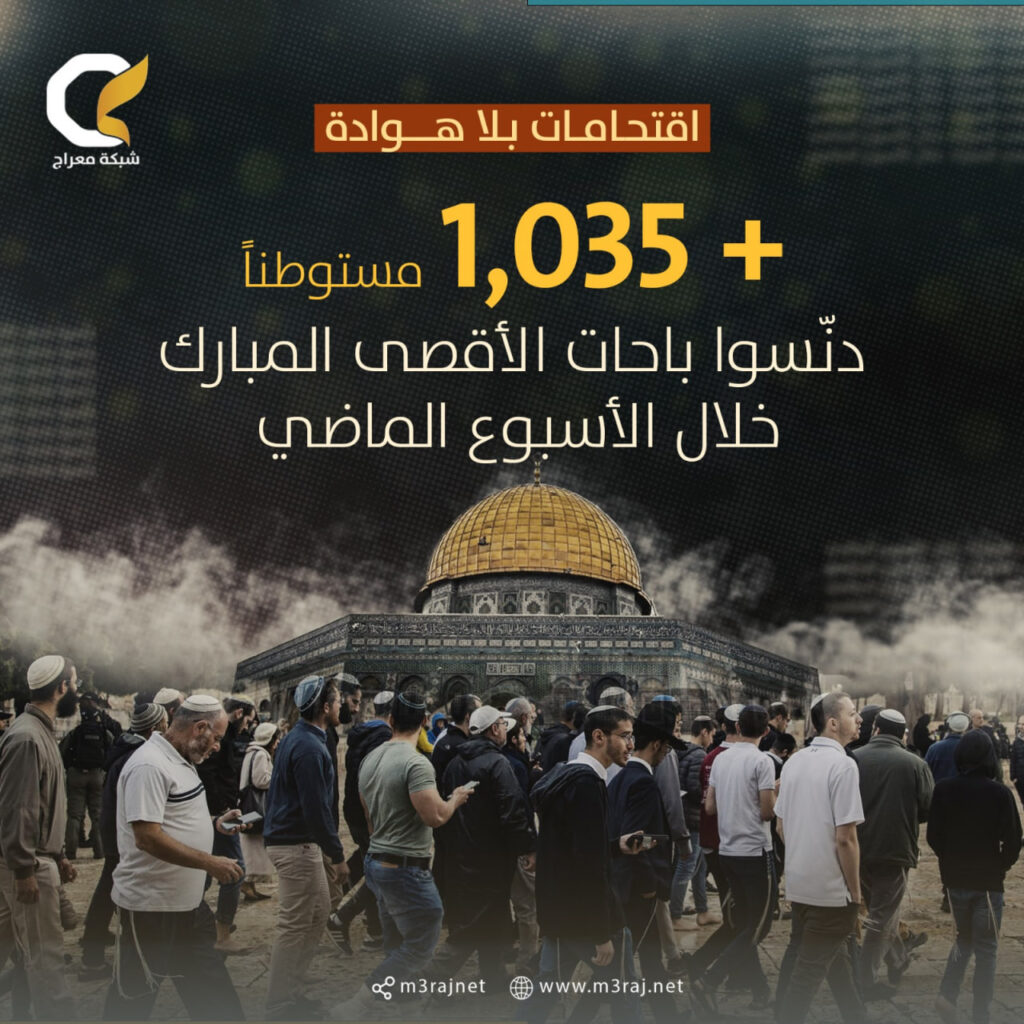 وأفادت مصادر محلية بأن أكثر من 1035مستوطناً اقتحموا الأقصى خلال هذه الفترة، حيث نفذوا جولات استفزازية وأدوا طقوساً تلمودية في باحاته.