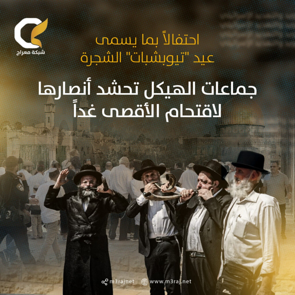 تسعى جماعات “الهيكل” المزعوم إلى حشد أنصارها لتنفيذ سلسلة اقتحامات واسعة داخل المسجد الأقصى المبارك غدًا، بهدف إحياء ما يسمى عيد “تيوبشبات” الشجرة.