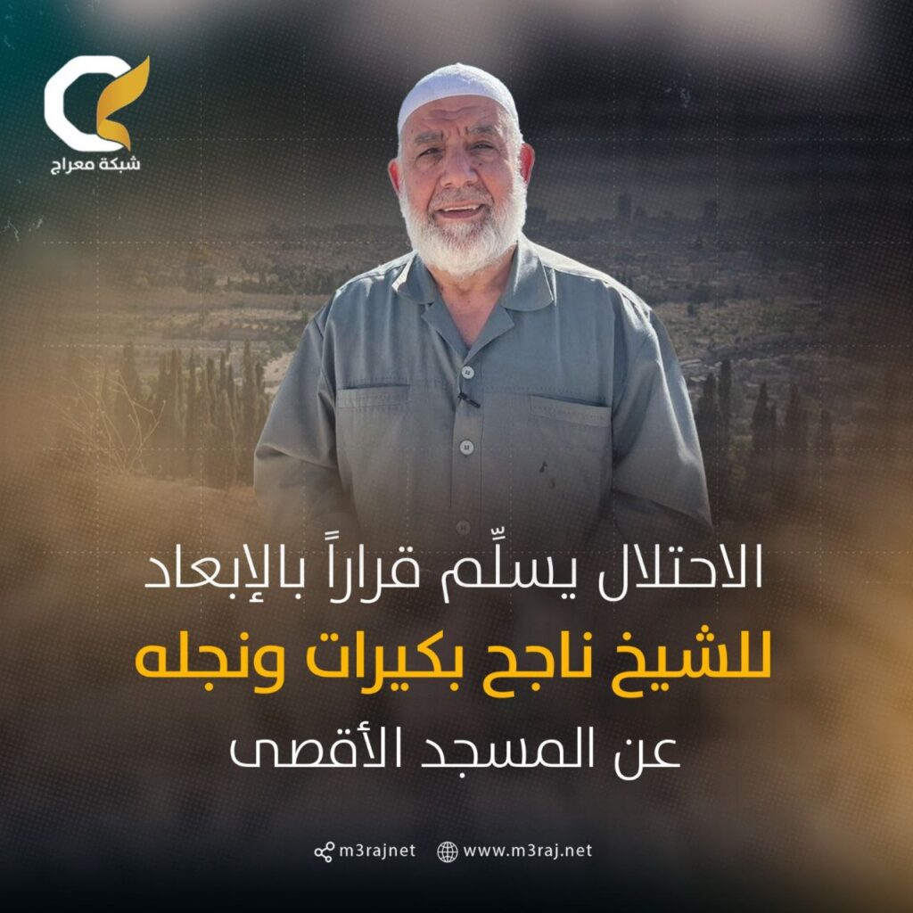 سلمت سلطات الاحتلال “الإسرائيلي” مساء أمس الأربعاء، نائب مدير أوقاف القدس السابق الشيخ ناجح بكيرات ونجله داوود، قرارات بالإبعاد عن المسجد الأقصى المبارك.