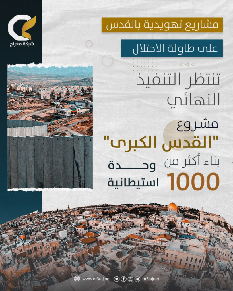 ويعد مشروع “القدس الكبرى” أبرز هذه المخططات، حيث يسعى إلى ضم مساحات واسعة من المستوطنات خارج الجدار إلى بلدية القدس، ما يعني فعليًا استيعاب 150 ألف مستوطن داخل حدود المدينة المحتلة وتعزيز سيطرة الاحتلال عليها.