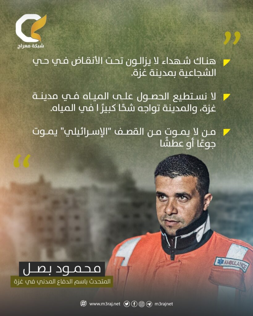 أكد المتحدث باسم الدفاع المدني الفلسطيني في غزة محمود بصل، أن هناك شهداء لا يزالون تحت الأنقاض في حي الشجاعية بمدينة غزة نتيجة القصف “الإسرائيلي” العنيف.