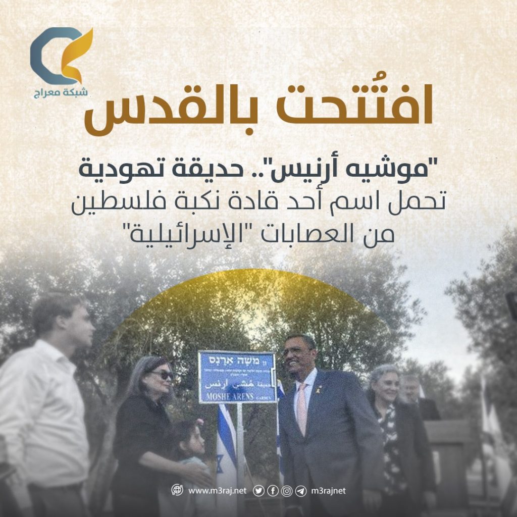 افتتح الاحتلال “الإسرائيلي” يوم الأربعاء الماضي، حديقة جديدة في القدس المحتلة تحمل اسم “موشيه أرنيس”، أحد أعضاء “عصابة إرجون” التي شاركت في احتلال فلسطين عام 1948، والمعروفة بالنكبة التي شهدها الشعب الفلسطيني.