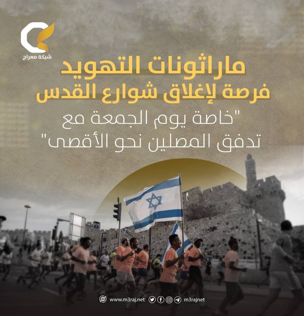 علّقت بلدية الاحتلال “الإسرائيلي” في شوارع القدس المحتلة لافتات تدعو المستوطنين للمشاركة في ماراثون الدراجات الهوائية التهويدي يوم الجمعة المقبلة، تزامناً مع توافد المصلين إلى المسجد الأقصى المبارك.