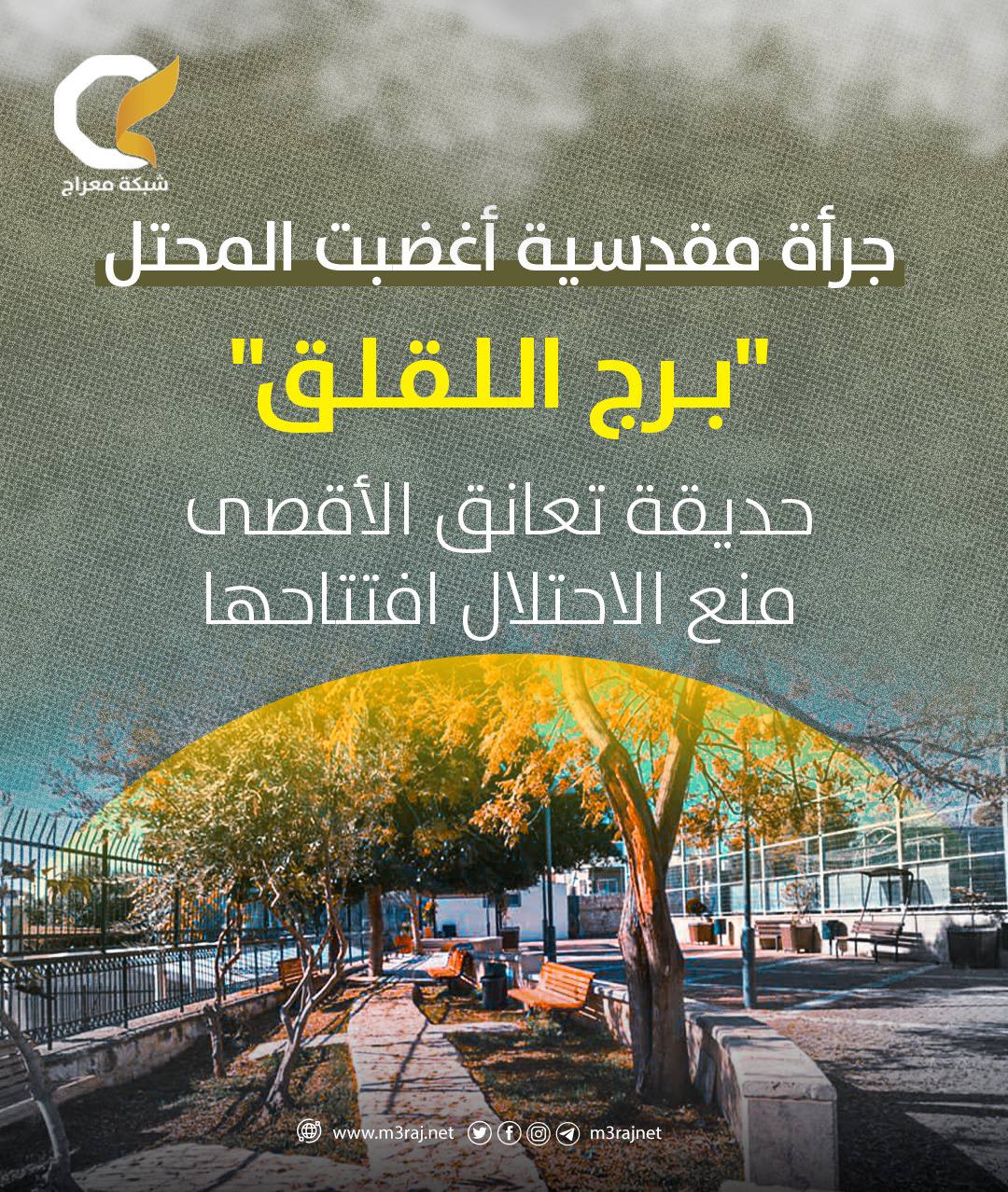 اقتحمت قوات الاحتلال “الإسرائيلي” مقر جمعية “برج اللقلق” في البلدة القديمة وأوقفت فعالية لإعلان افتتاح مشروع حديقة مجتمعية تطل على المسجد الأقصى، بعد انجاز استمر لسنوات طويلة.