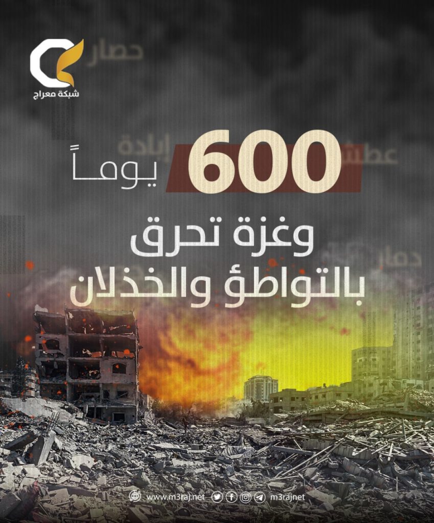 تواصل قوات الاحتلال “الإسرائيلي” ارتكاب مجازر دامية في قطاع غزة لليوم الـ600 على التوالي، ضمن حملة إبادة جماعية تستهدف المدنيين العزّل بلا هوادة.