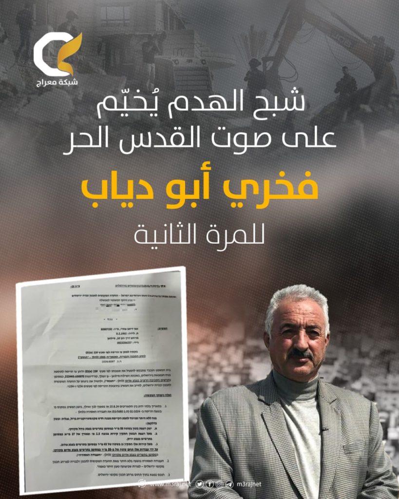 وكان الاحتلال قد هدم منزل أبو دياب الأول في فبراير 2024، ضمن سياسة متصاعدة ضد النشطاء المقدسيين.