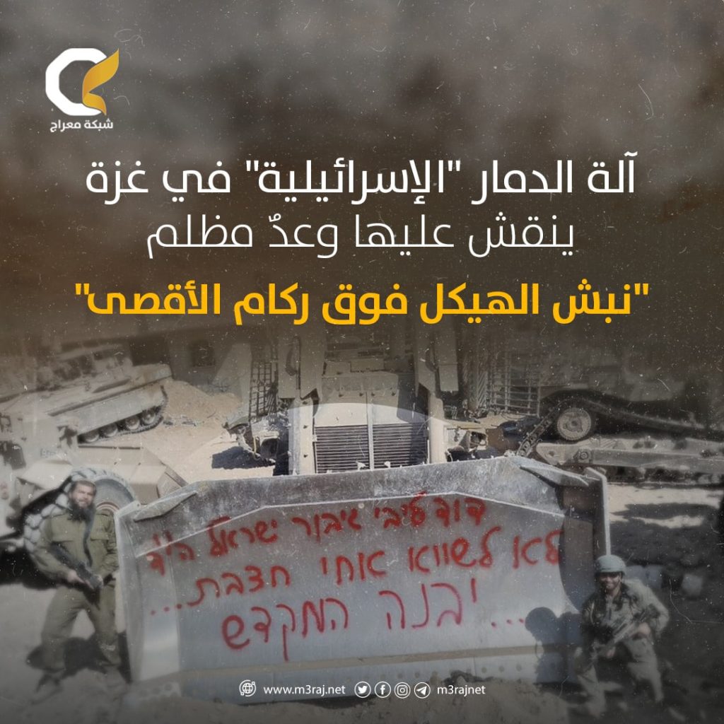 نشر جنود الاحتلال “الإسرائيلي” صورة لآلية عسكرية تقف وسط ركام منازل مدمرة في قطاع غزة، وقد كُتبت عليها عبارات تحريضية تدعو صراحة إلى هدم المسجد الأقصى وبناء “الهيكل” المزعوم فوق أنقاضه.