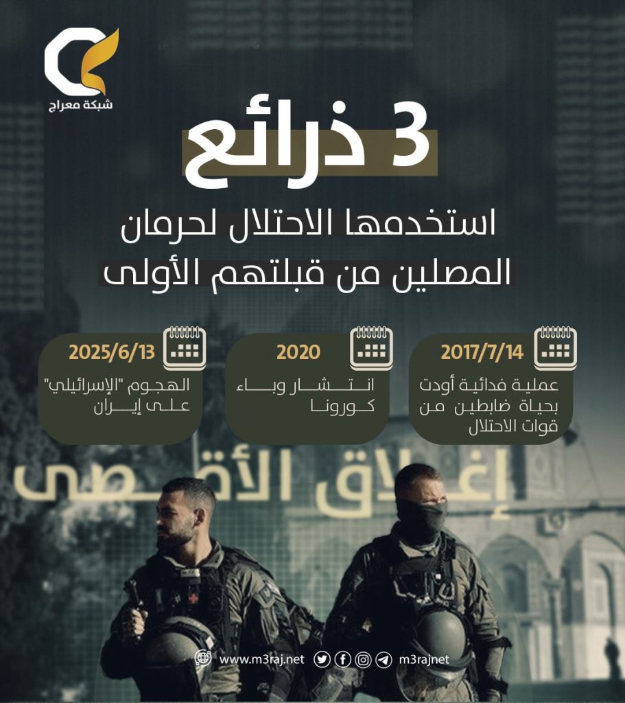 استغل الاحتلال “الإسرائيلي” ثلاث ذرائع خلال الأعوام الماضية لإغلاق المسجد الأقصى المبارك، في إطار محاولاته لفرض سيطرته على واحد من أقدس المقدسات الإسلامية.