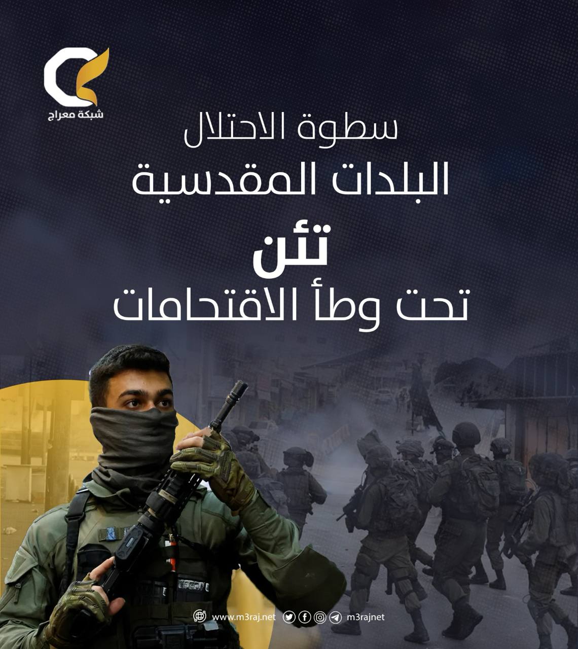 واقتحمت القوات عدة أحياء في بلدة سلوان، وأطلقت قنابل الغاز والصوت صوب السكان.