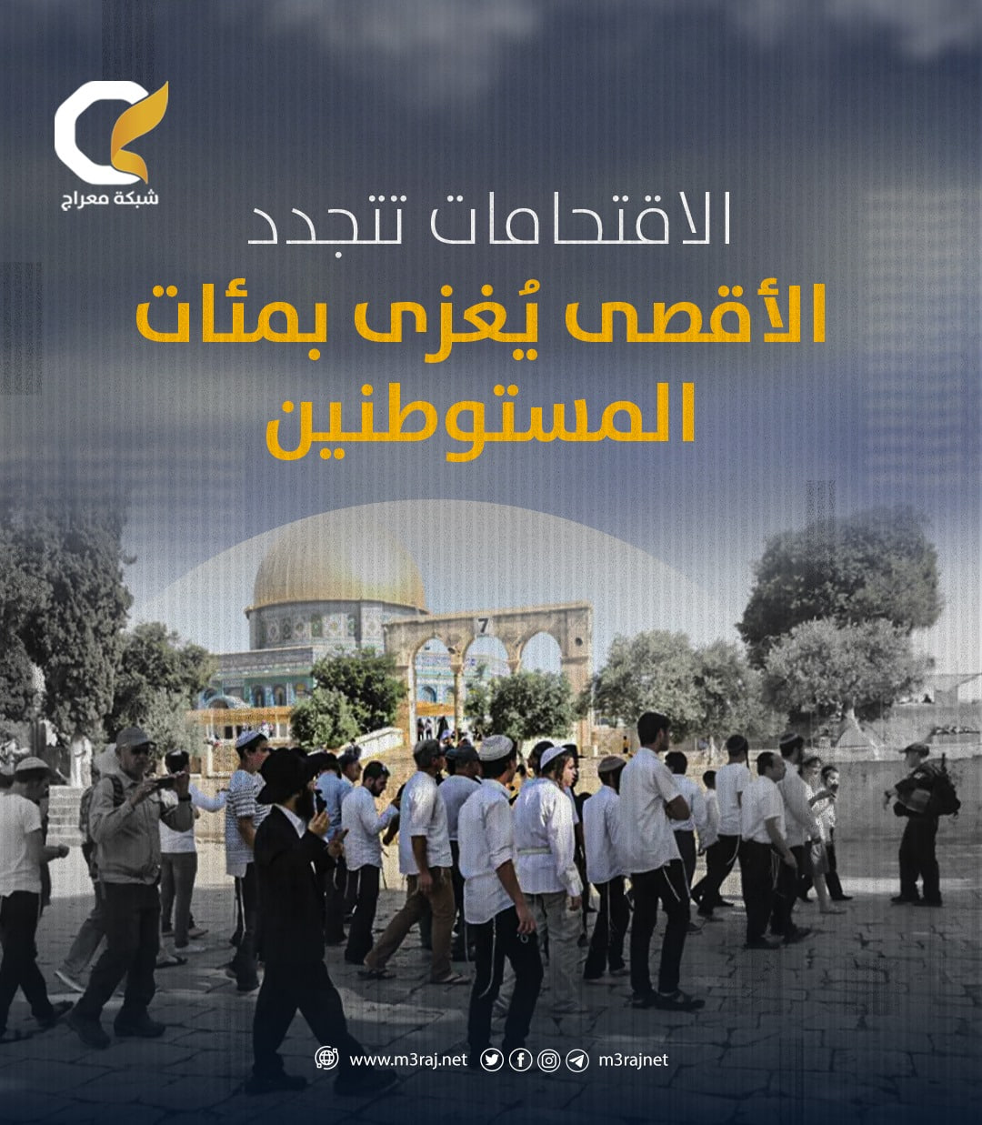 اقتحم مستوطنون متطرفون اليوم الخميس، المسجد الأقصى المبارك من باب المغاربة، بحماية مشددة من قوات الاحتلال “الإسرائيلي، بعد استئناف عمليات الاقتحام عقب إغلاق دام 6 أيام للحرم.