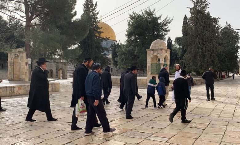 اقتحم مستوطنون متطرفون، اليوم الخميس، باحات المسجد الأقصى المبارك، وسط حماية قوات الاحتلال “الإسرائيلي”.
