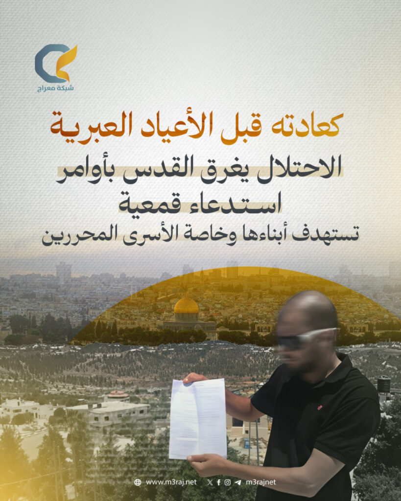 يتعمد الاحتلال إصدار أوامر استدعاء وإبعاد بحق أبناء القدس، ولاسيما الأسرى المحررين، مع اقتراب موسم الأعياد العبرية، بهدف تسهيل اقتحامات المستوطنين للمسجد الأقصى والبلدة القديمة، وفرض سيطرته على السكان وترهيبهم.