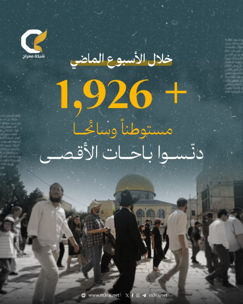 وتجاوز عدد المستوطنين والمقتحمين تحت غطاء السياحة 1926 مستوطناً، وفق مصادر محلية، حيث تجولوا في باحات الأقصى وأدوا طقوساً تلمودية علنية، في محاولة لفرض وقائع جديدة على حساب قدسية المكان وهويته الإسلامية.