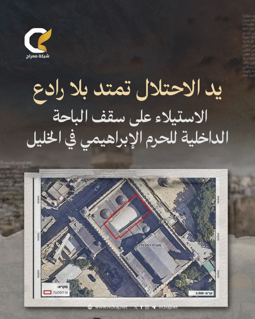 كشفت هيئة مقاومة الجدار والاستيطان عن إصدار سلطات الاحتلال الإسرائيلي قرارًا بالاستيلاء على سقف الباحة الداخلية للمسجد الإبراهيمي في مدينة الخليل.