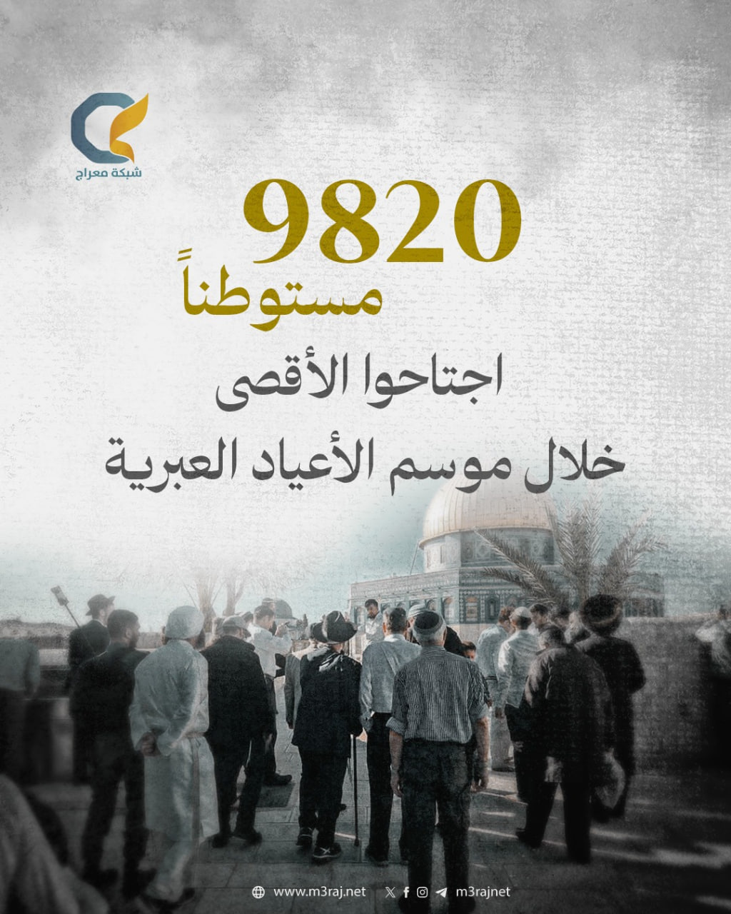 وبلغ عدد المستوطنين الذين اقتحموا الأقصى خلال هذه الفترة إلى نحو 9820 مستوطنًا، وسط حماية مشددة من قوات الاحتلال.