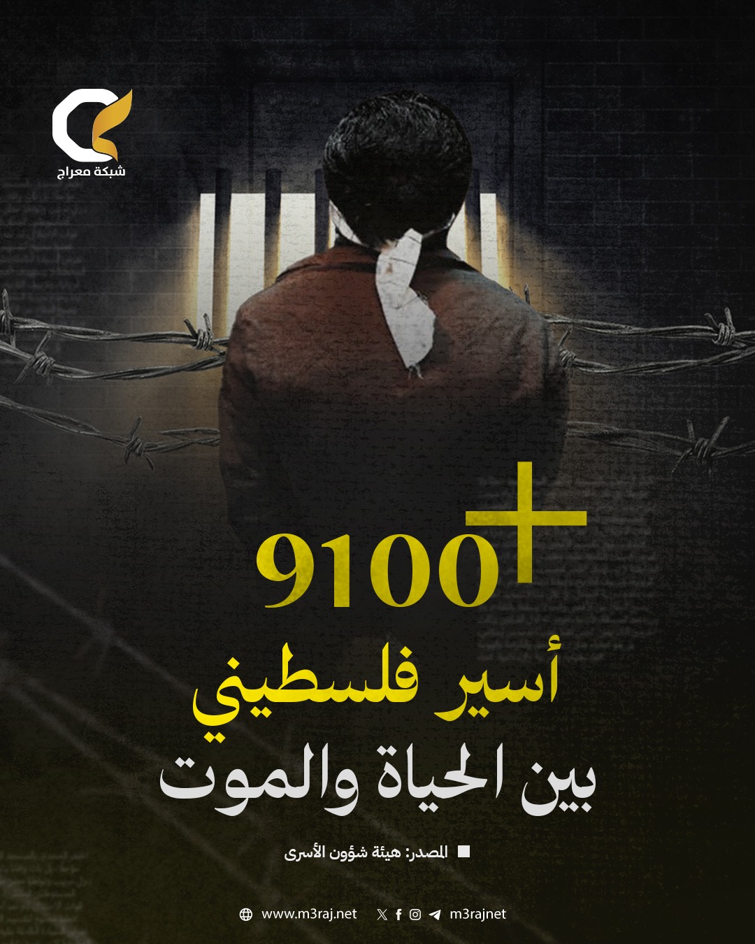 أكثر من 9100 أسير فلسطيني داخل سجون الاحتلال الإسرائيلي، يعيشون أوضاعاً اعتقالية قاسية تفتقر لأبسط الحقوق الإنسانية.