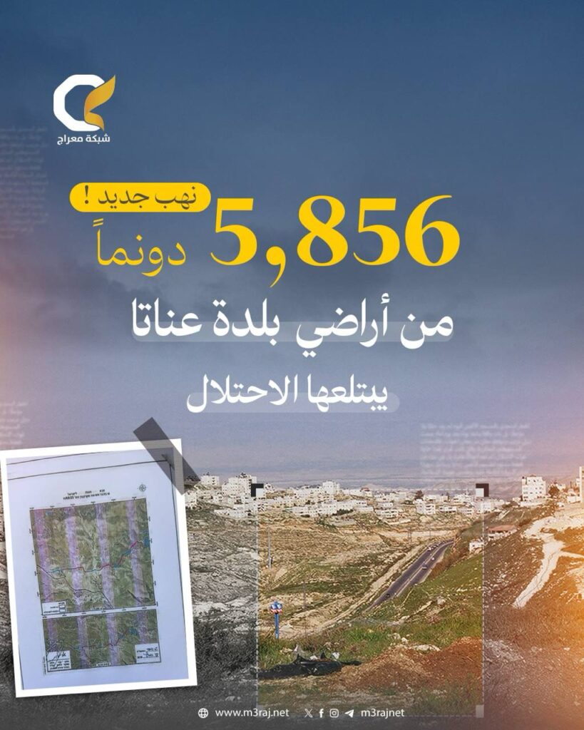 أصدرت سلطات الاحتلال “الإسرائيلي” قرارًا يقضي بالاستيلاء على أراضٍ واسعة في بلدة عناتا شمال شرقي القدس المحتلة، بزعم تخصيصها لأغراض عسكرية.