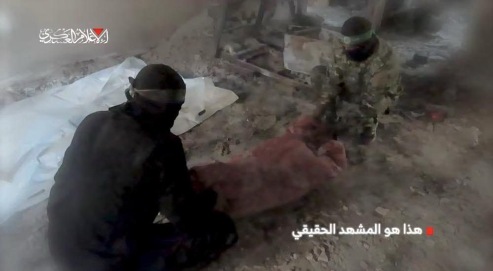 بثت كتائب الشهيد عز الدين القسام الجناح العسكري لحركة المقاومة الإسلامية (حماس)، يوم الأربعاء، مشاهد كشفت من خلاله حقيقة المشاهد التي بثتها طائرة مسيرة إسرائيلية لعملية انتشال جثث الأسرى القتلى قبل أيام في قطاع غزة.