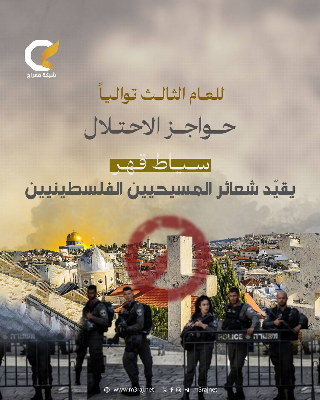 وللعام الثالث على التوالي، تُقيَّد الشعائر الدينية للمسيحيين بإجراءات الاحتلال وممارسات جنوده، إذ تُحاصر الأعياد بالحواجز الإسمنتية والأسلاك الشائكة، في مشهد يعكس سياسة تضييق ممنهجة.