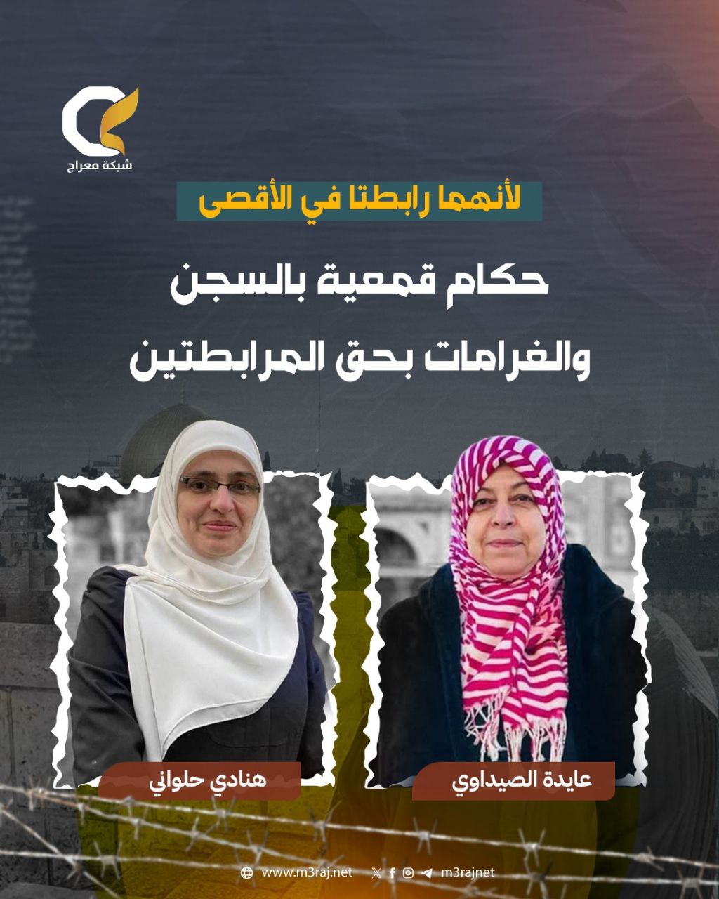 أصدرت محكمة “الصلح” الإسرائيلية في القدس المحتلة، أمس الأربعاء، قرارّا بحق المرابطتين المقدسيتين هنادي الحلواني وعايدة الصيداوي.
