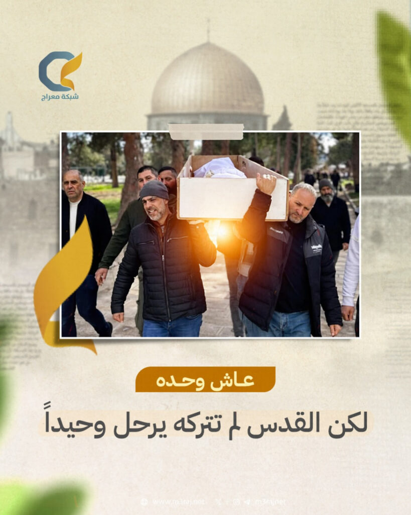 عثر المصلون داخل المسجد الأقصى المبارك على نعش لرجل لم يتقدّم أحد لحمله، وبقي في مكانه لفترة من الزمن، قبل أن يتبيّن أن المتوفّى من خارج مدينة القدس المحتلة، وكان يقيم فيها وحيدًا دون أقارب.