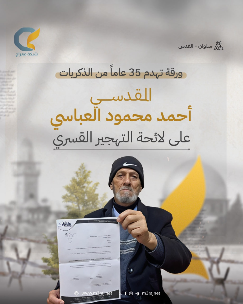 هذا القرار يمثل استمراراً لحملة التهجير القسري التي يستهدف بها الاحتلال أهالي سلوان، محاولاً طمس تاريخ المدينة وتشريد سكانها بالقوة.