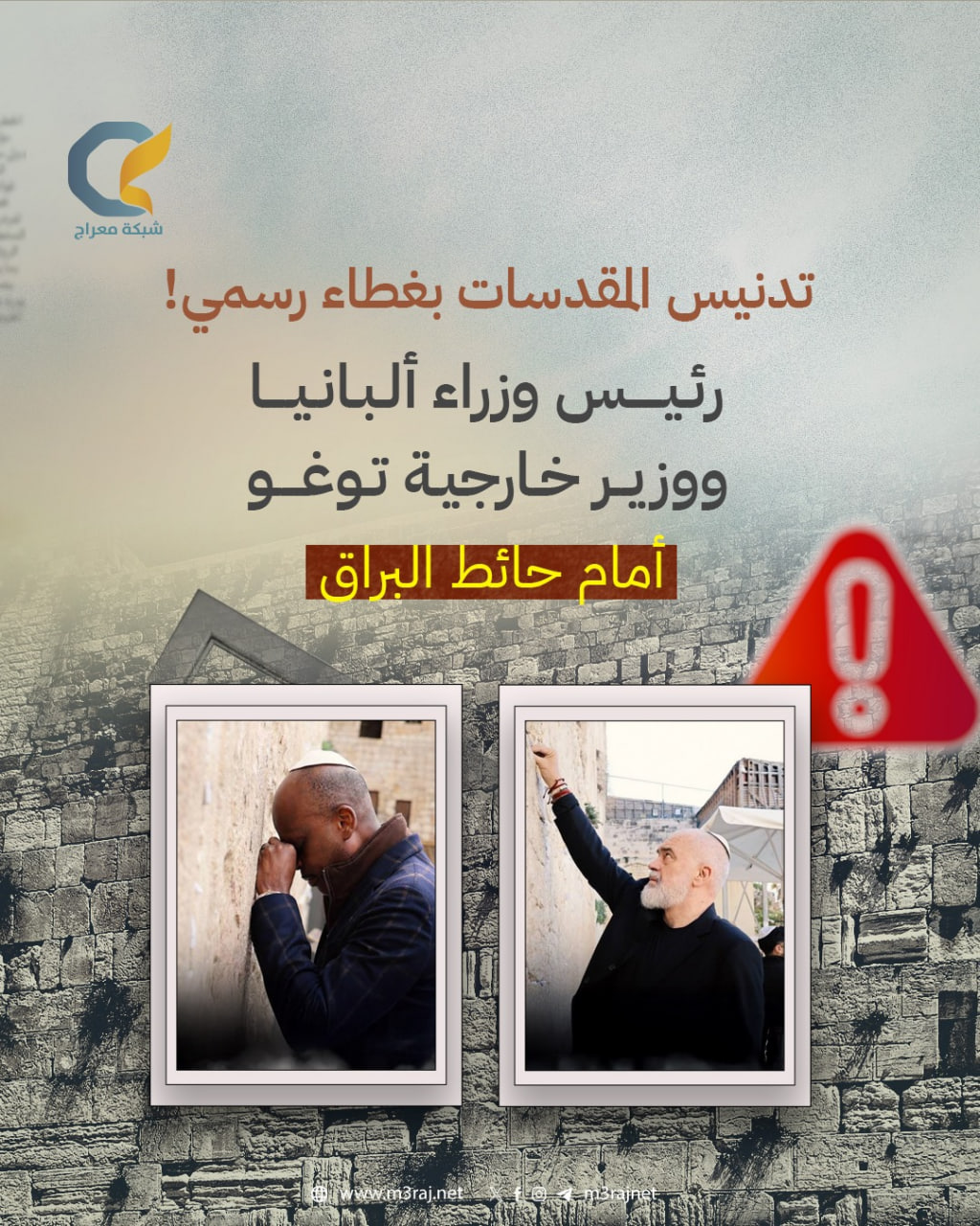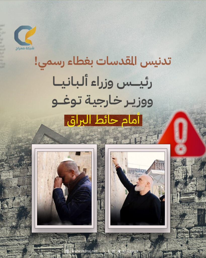 اقتحم رئيس وزراء ألبانيا ووزير خارجية توغو اليوم حائط البراق الملاصق للمسجد الأقصى المبارك.