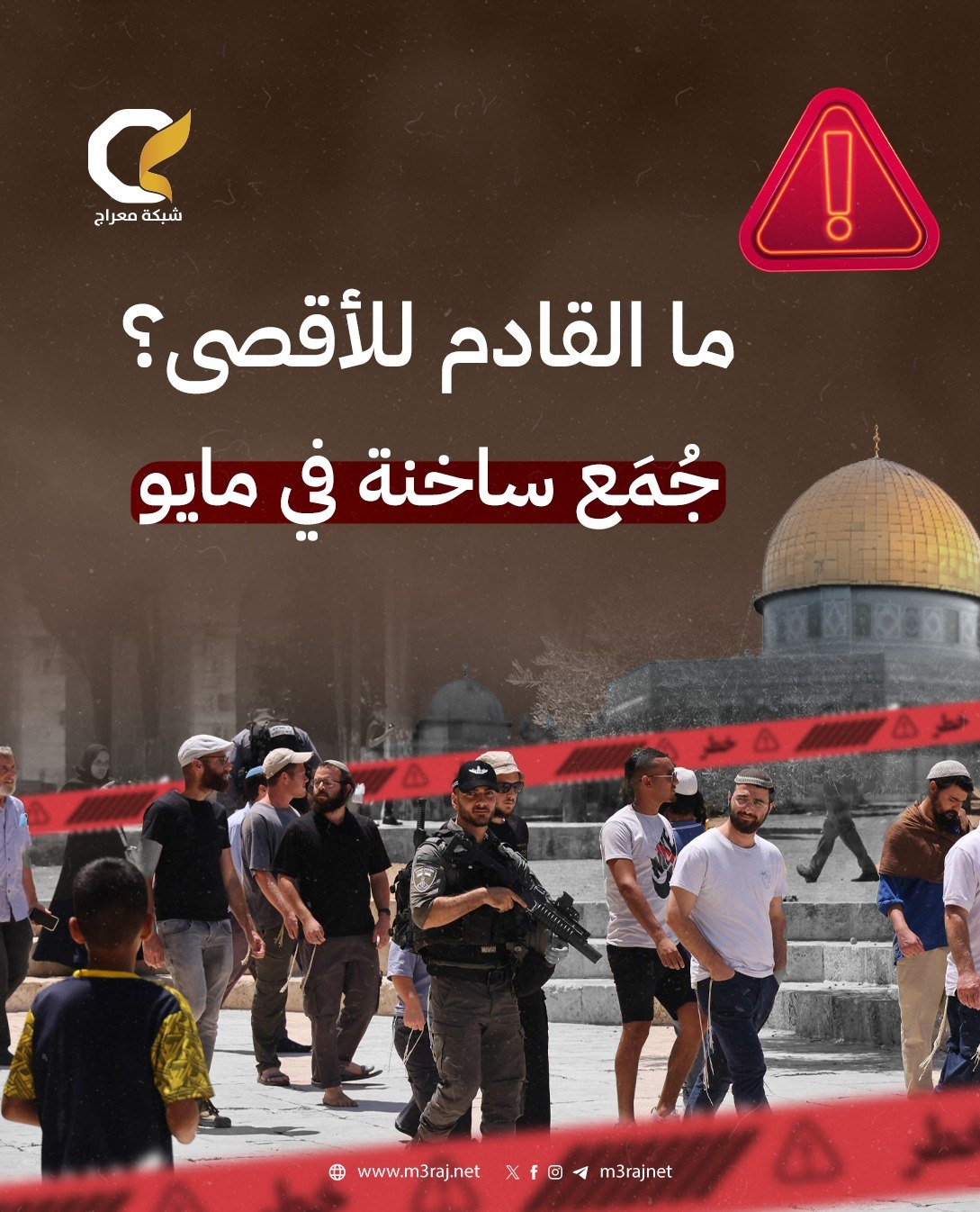 وفي ظل هذا التصعيد المتوقع، تتصاعد الدعوات الفلسطينية والمقدسية لتكثيف الرباط داخل المسجد الأقصى ومحيطه خلال شهر مايو، باعتباره خط الدفاع المباشر لإفشال محاولات فرض الطقوس التوراتية بالقوة داخل الحرم القدسي.