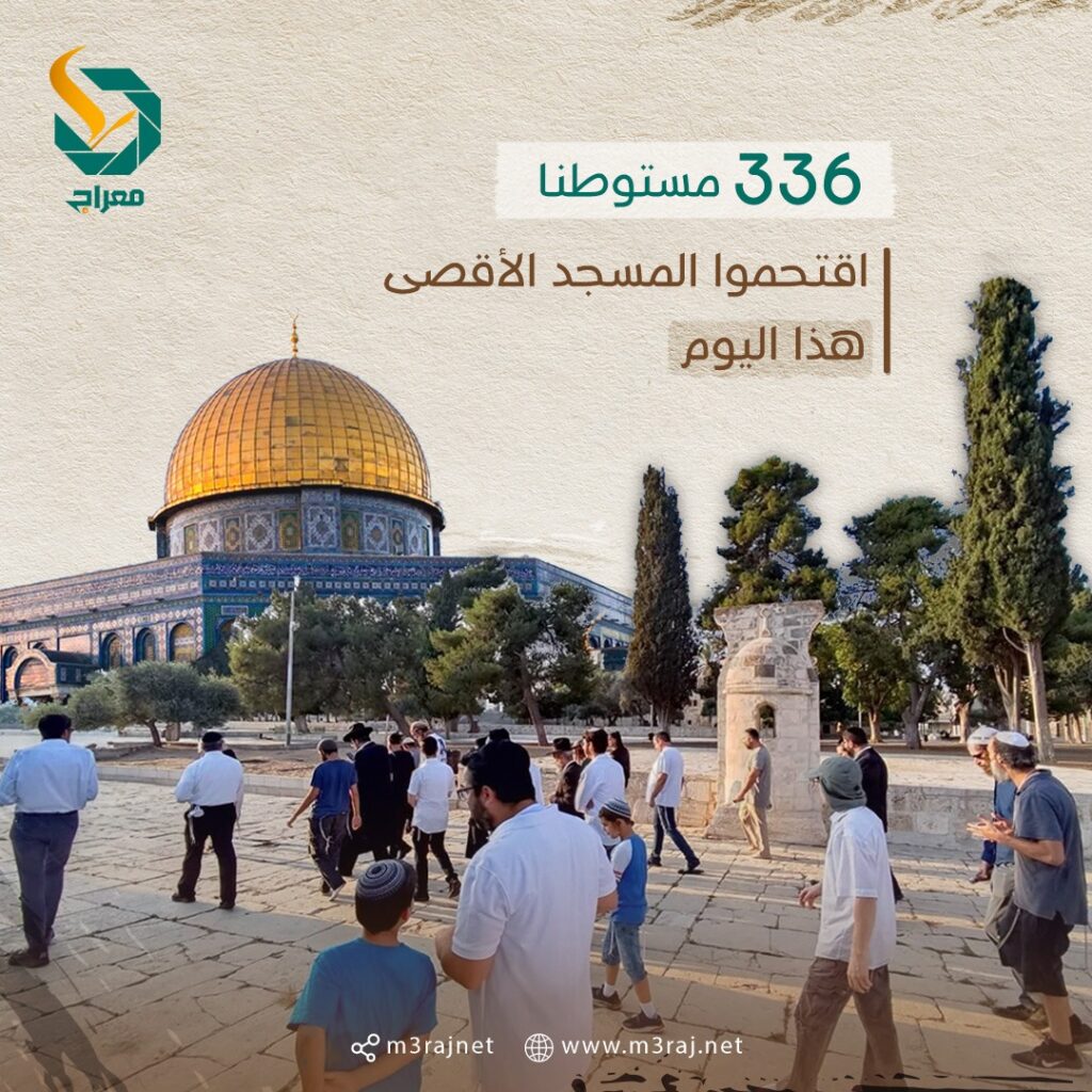 وأفادت دائرة الأوقاف الإسلامية في القدس المحتلة بأن 336 مستوطنا بينهم طلاب يهود وعلى رأسهم الصهيوني المتطرف يهودا غليك وعلى شكل مجموعات متتالية اقتحموا منذ ساعات الصباح، المسجد الأقصى، ونظموا جولات استفزازية في ساحاته.