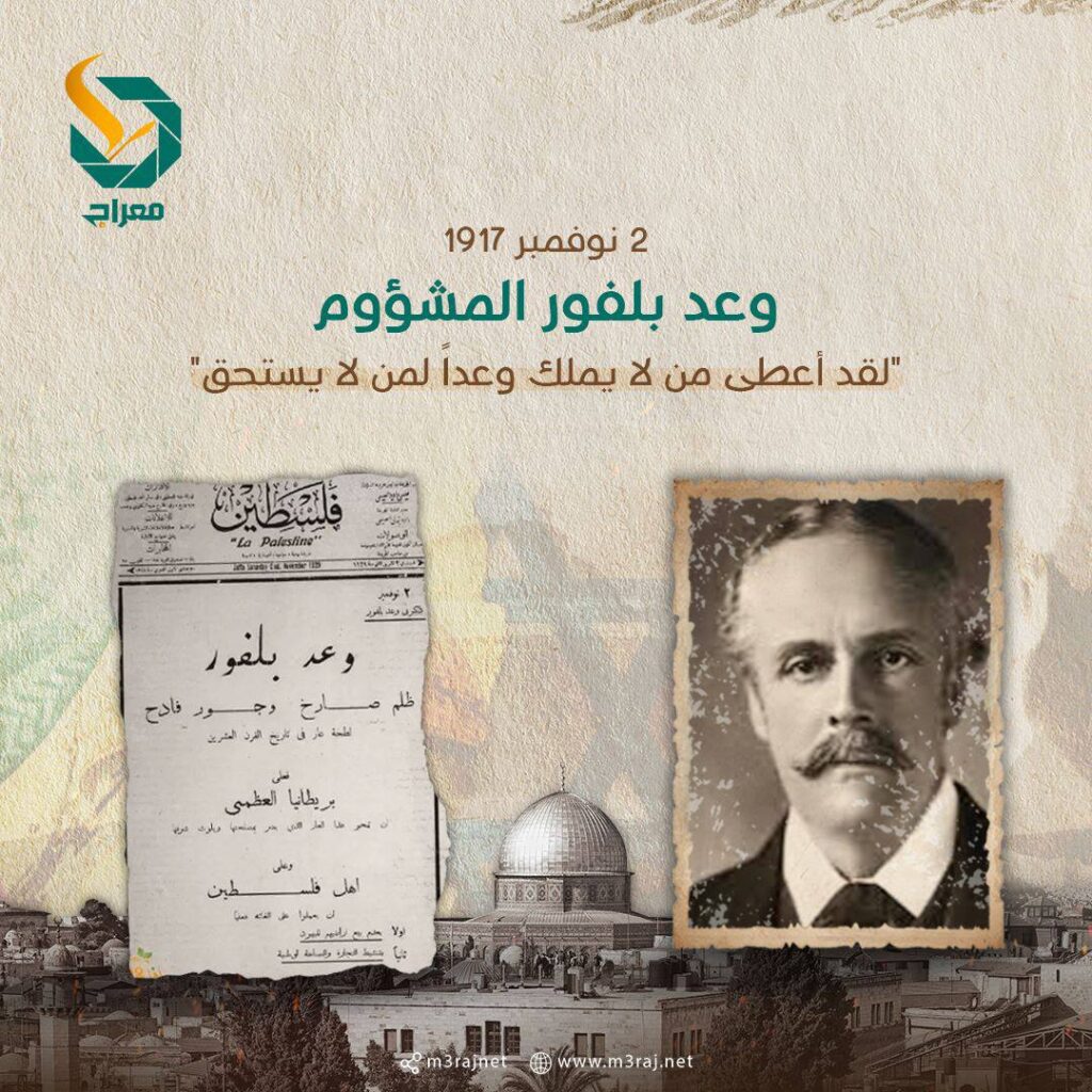 ففي مثل هذا اليوم من العام 1917، أرسل وزير خارجية بريطانيا في تلك الفترة، آرثر جيمس بلفور، برسالة إلى اللورد ليونيل والتر روتشيلد أحد زعماء الحركة الصهيونية آنذاك، لتُعرف فيما بعد باسم “وعد بلفور”.